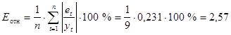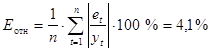 Среднюю относительную ошибку аппроксимации находим по формуле: