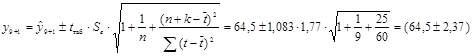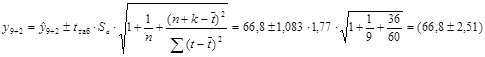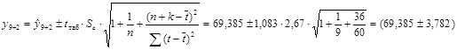 С вероятностью 70 % фактическое значение спроса на кредитные ресурсы будет находиться в интервале от 64,29 до 69,31 млн. руб.