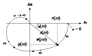 На рисунке 1 приведен типичный пример годографа Найквиста в положительном диапазоне частот (0 < w <¥). На нем показаны все составляющие частотной характеристики как комплексной функции вещественного аргумента.