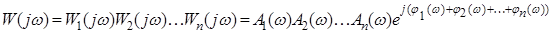 Удобство логарифмических характеристик заключается в возможности простого определения амплитудных характеристик последовательного соединения звеньев и спрямления амплитудных характеристик, как будет показано ниже.