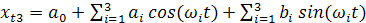 Здесь х t - фактические значения урожайности; at , bt - амплитуды t-й гармоники; Т1 - период гармоники; t - текущее время; m - количество главных гармоник.