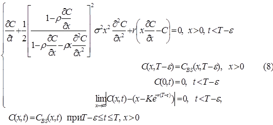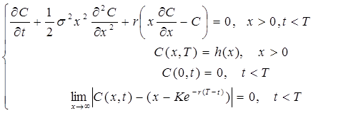 M >0 - деяке достатньо велике число, яке залежить від К , і таке, що C (x,t ) =CBS (x,t ) = x-Ke-r (T-t ) при х ≥ М .