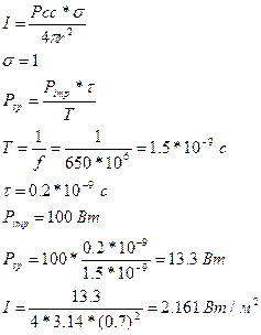 Розрахуємо інтенсивність випромінювання в дальній зоні: