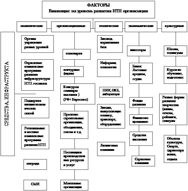 Как видно из приведенного рисунка общей схемы рекомендуемой организационной структуры создания и развития системы государственной поддержки НТП в строительстве, совершенствование управления персоналом – это комплексная задача, на решение которой влияют пять групп факторов внешней среды: политические, организационные, технические, экономические, культурные. Ее необходимо системно решать не только работникам конкретной организации своими силами и средствами, но и большому числу организаций разного уровня управления, используя соответствующие финансовые, материально-технические, энергетические, трудовые и др. ресурсы. Их объемы и источники должны определять разработчики инновационных проектов, инвесторы и исполнители работ, а обеспечивать в приоритетном порядке соответствующие инвесторы, заказчики, застройщики с учетом средств государственных, региональных и местных бюджетов и внебюджетных фондов поддержки развития и т.п.