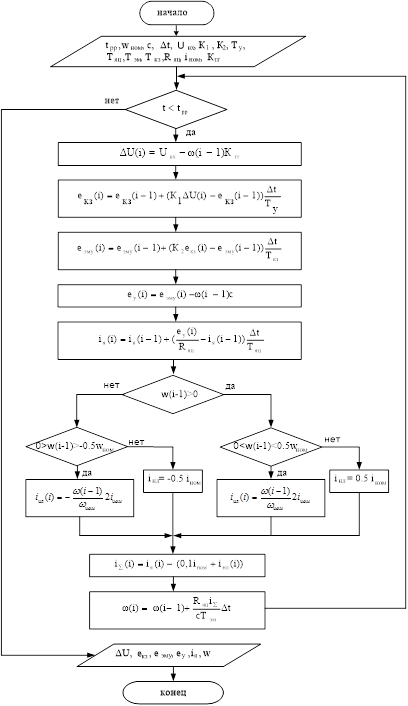 Рис. 4 – Алгоритм расчета переходных процессов в системе “ЭМУ – Д”