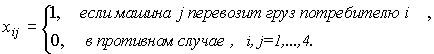 Здесь через xij обозначен факт поставки i -му потребителю груза j -ой машиной, т.е.