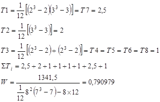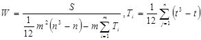 Где t - число связанных рангов в каждом отдельно взятом столбце матрицы рангов,