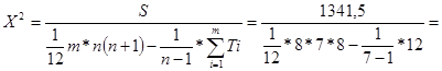 Для определения значимости коэффициента конкордации исчисляется критерий X2 (Пирсона) с числом степеней свободы n-1: