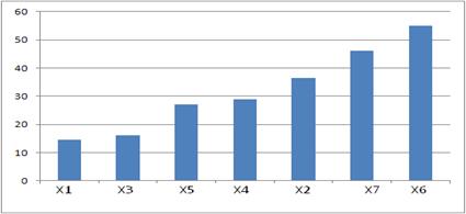 Из данных рисунка 1 видно, что спрос на сыр распределяется следующим образом: Х1, Х3, Х5, Х4, Х3, Х7, Х6. Таким образом, можно сделать вывод о том, что наибольшим спросом пользуется сыр «Традиционный» и «Пупырчатый».