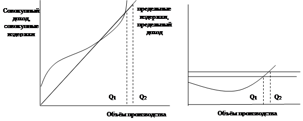 Наибольшая выгодность любого дела устанавливается при таком его объеме, который выравнивает предельные издержки с предельным доходом (выгодой или пользой при безденежной оценке). На предприятии выгодно расширять объем производства до тех пор, пока дополнительный доход от добавочной продукции (предельный доход) превышает дополнительные издержки на этот объем (предельные издержки). Предельные издержки начиная с определенного объема обязательно нарастают, что связано с общим законом падающей отдачи ресурсов: если какие-либо ресурсы ограничены, а другие доступны, то дополнительные вложения доступных ресурсов приводит к снижению дополнительной продукции на единицу дополнительно вложенных ресурсов или, что то же самое, к росту дополнительных издержек на единицу дополнительного количества продукции.