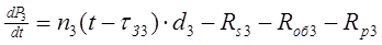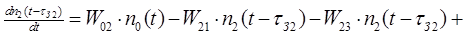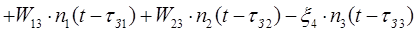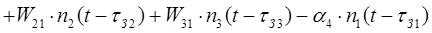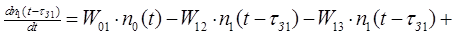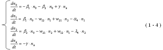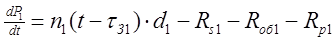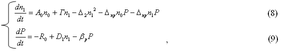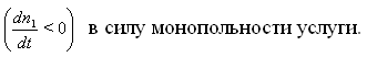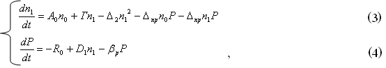 В этих уравнениях левые части отражает изменения числа абонентов и прибыли в единицу времени, например за месяц или квартал, W01 и W10 – вероятности того, что абонент начал или прекратил получать услугу соответственно, n0 – число потенциальных абонентов; n1 dcp – это доход, полученный в данном месяце от n1 абонентов при среднем доходе от одного равном dcp . Rs , Rоб, и Rp – расходы в данном месяце на оплату труда, оборудование и рекламу соответственно. Если рассмотреть более подробно каждый из членов и привести подобные, то мы придем к системе нелинейных дифференциальных уравнений (3)-(4).