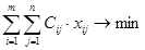 С учетом полученных условий необходимо найти такие неотрицательные значения величин объемов перевозок хij , при которых сумма произведений значений критерия Сij на размер перевозок будет минимальной, т.е.