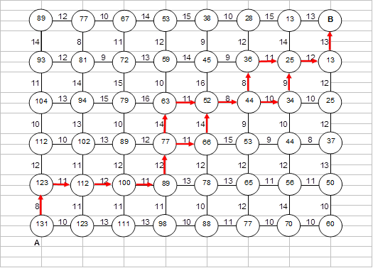Присвоение потенциалов начинают со строки, в которой среди базисных клеток имеется максимальное расстояние. Этой строке можно присвоить любой положительный потенциал, например, 100. Затем, используя условие оптимальности (2), находят потенциалы остальных строк и столбцов по формулам:
