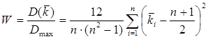 Каждый Э j эксперт оценивает степень подготовленности каждого члена группы кадрового резерва, сопоставив ему целое число – его ранг kij , т.е. номер члена группы в порядке убывания оценки степени подготовленности. Первый ранг имеет тот, кто, по мнению эксперта, подготовлен лучше других, второй – менее подготовлен, но лучший из оставшихся.