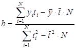 Задача состоит в определении уровня динамического ряда за пределами взятого базисного периода через определение значений параметров уравнения (a , b ). Базисный период принимается по исходным данным, t баз = 15.