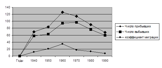 Анализируя таблицу и график, мы заметим, что начиная с 1970 и заканчивая 1990 годами, резко снизилось количество въезжающих и выезжающих граждан, а вплоть до 1960 года оно резко росло. Это можно объяснить тем, что в это время регион развивался, и требовалось наличие рабочей силы. В связи со стабилизацией экономического положения региона и рабочих мест, поток въезжающих схлынул, а остальные, имеющие постоянное место работы, получили постоянное место жительства. Чем объясняется снижение потока выезжающих граждан. Большую часть мигрирующего населения, составляет молодежь, приезжающая из других областей для получения образования. Это объясняется наличием большого числа высококвалифицированных учебных заведений, в частности ВУЗов.