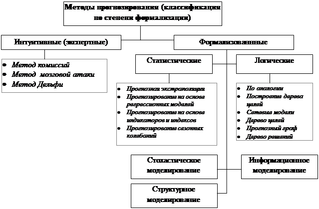 Наиболее распространенной в экономической литературе является классификация методов прогнозирования по степени формализации, которая приводится на рисунке ниже (рис.1).