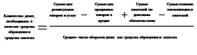 Товарно-денежные отношения требуют определенного количества денег для обращения. Закон денежного обращения , открытый Карлом Марксом, устанавливает количество денег, нужное для выполнения ими функций средства обращения и средства платежа. К. Маркс определяет это количество следующим образом: