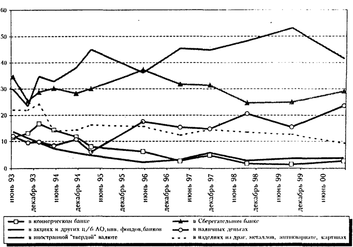 В России доминирующие инвестиционные стратегии населения серьезно трансформировались на протяжении 90-х годов. По данным ВЦИОМ, в январе 1992 г., в самом начале экономических реформ, 70% россиян утверждали, что имеют сбережения. В то время под ними в первую очередь понимались вклады в Сберегательном банке. Практически не существовало проблем принятия финансовых решений, выбора и риска, поскольку все было заранее определено. Население не имело опыта распоряжения своей собственностью и своими деньгами. До начала рыночных реформ люди вкладывали много (норма сбережений была достаточно высока), надолго и в высоконадежные активы.