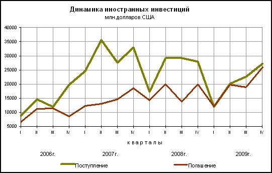 · значительный отток капитала из России за рубеж. В IV квартале 2008 г. он достиг 130,5 млрд долл. (что превышает суммарный приток иностранного капитала в Россию за три предшествующих года). В январе 2009 г. еще около 40 млрд долл. «ушло» за рубеж, что привело к уменьшению объема инвестиционных ресурсов внутри страны;