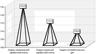 Индексы номинальной, реальной заработной платы и потребительских цен на товары и услуги в апреле 2001 года по отношению к этому же месяцу 2000 года в процентах