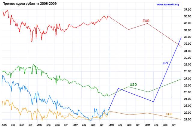 Рисунок 2.2 – Прогноз курса рубля на 2008 – 2009 гг