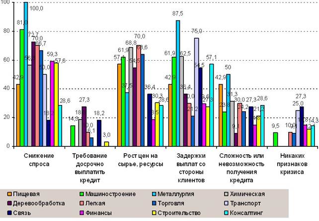 Рисунок 2.3 – Основные отрасли, которые страдают от финансового кризиса