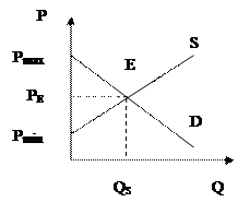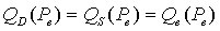 При данной цене на рынке устанавливается и равновесное количество предлагаемых на рынке товаров: QE = QD = QS