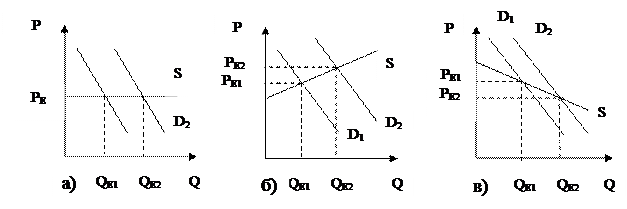 · Реакция рынка на изменение спроса D рис.2.8 а) ;