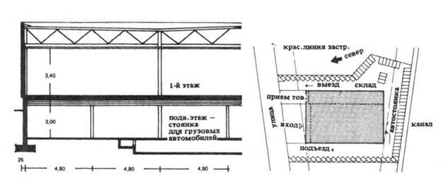 15. Магазин самообслуживания того же типа, что на рис. 14, но с торговым залом площадью 194 м2 .