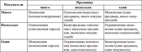 Олигопсония . Тип рыночной структуры, при которой существует группа покупателей определенного товара. Ограничивая закупки товара, покупатели обеспечивают себе монопольную прибыль за счет потери части доходов продавцами.