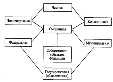 В современной России в соответствии с законом признается частная, государственная, коллективная, муниципальная и иные формы собственности.