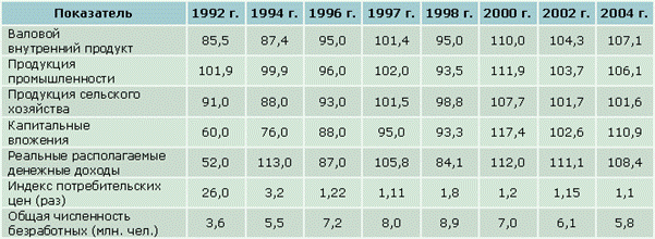 Таблица 1. Основные социально-экономические показатели развития России.