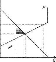 N0 N1 N2 Рис. 1.2. Равновесие на рынке труда при безработице |
