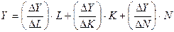 Y означает национальный доход или ВНП данной страны, а L, K, N – наличные трудовые ресурсы, капитал и земельные ресурсы в масштабах национальной экономики.