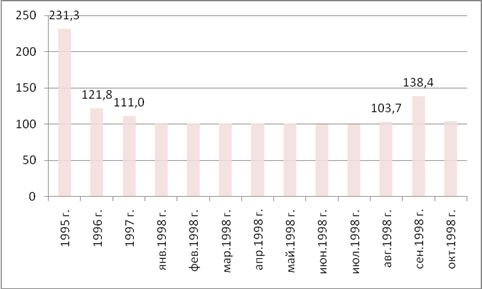 Способность государства поддерживать уровень инфляции на приемлемом уровне свидетельствует об эффективности экономической политики, в том числе денежно-кредитной, об устойчивости и динамизме всей экономической системы. Снижение уровня инфляции в России определено в качестве одной из важнейших задач денежно-кредитной и бюджетной политики на ближайшие годы[1,7].