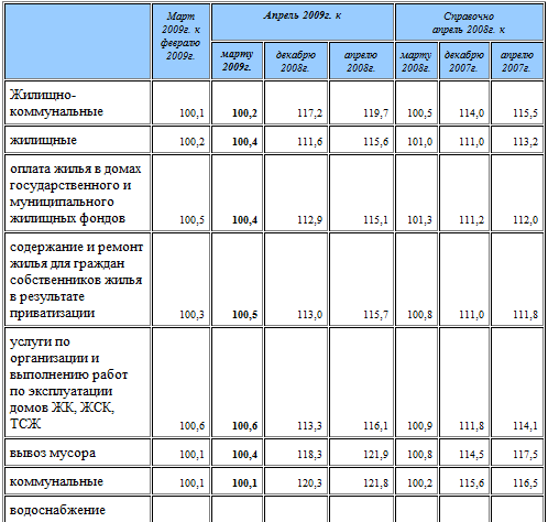 Таблица 4 – Индексы цен на жилье в 1 квартале 2009 г., % [28]