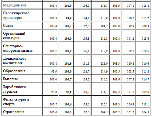 Таблица 1 – ИПЦ на отдельные группы и виды услуг, % [28]
