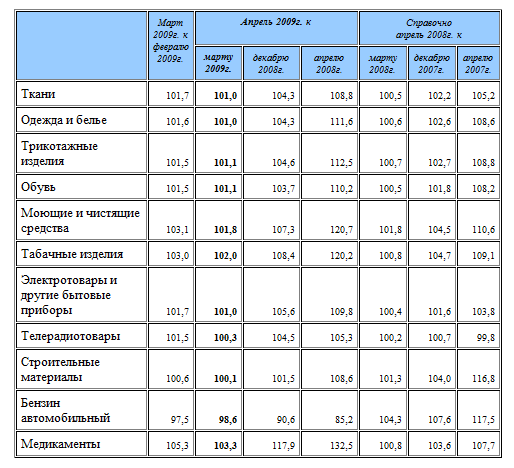 Таблица 1 – Индексы потребительских цен на отдельные группы непродовольственных товаров, % [28]