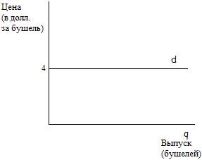 Поскольку решения отдельных фирм не влияют на рыночную цену, кривая дохода является прямой линией, так как при заданной цене доход возрастает пропорционально выпуску. Кроме того, кривая спроса для отдельной фирмы задается горизонтальной линией. На рис. 1 кривая спроса для фермера неизменно соответствует 4 долл. за бушель пшеницы.