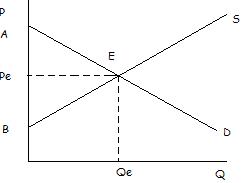 В точке Е достигается равновесный объем производства Qe и равновесная цена Рe . Площадь 0ВЕQe соответствует величине издержек производителей, Рe ВЕ – составляет прибыль производителей, а АРe Е – потребительский излишек. Равновесие в конкурентной отрасли устанавливается тогда, когда цена оказывается равной предельным издержкам. В этом случае все агенты рынка возмещают свои затраты и ни у кого нет стимулов к изменению объемов продаж.