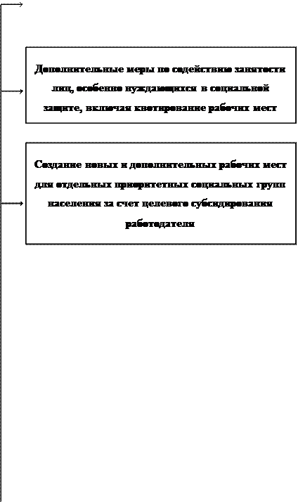 - активный: стимулирование предложения труда, стимулирование спроса на труд, меры по согласованию спроса и предложения (информация, консультативные услуги, профконсультации, разработка программ занятости для низкоконкурентных групп населения и т.д.), меры помощи регионам и т.д.