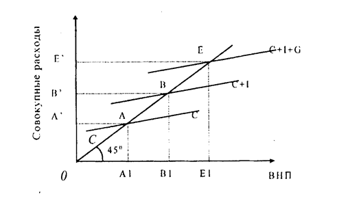 Динамика налогов, подобно инвестициям и государственным расходам, обладает мультипликационным эффектом. Но мультипликатор налогов всегда меньше мультипликатора инвестиций и государственных расходов, поскольку, например, при сокращении налогов потребление увеличивается лишь частично (есть располагаемого дохода идет на увеличение сбережения), тогда как каждая единица прироста государственных расходов оказывает прямое воздействие на объем ВНП.