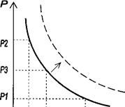 Если правительство страны рассматривает уровень безработицы U1 (ему соответствует темп роста цен Р1) как чрезвычайно высокий, то для его понижения проводятся бюджетные и денежно-кредитные мероприятия, которые стимулируют спрос. Это ведет к расширению производства, созданию новых рабочих мест. Норма безработицы снижается до величины U2, но одновременно возрастают темпы инфляции до Р2.