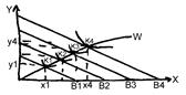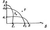 График «границы производительный возм» показывает, что национальная экономика, полностью реализующая потенциал не может увеличить производство кого-либо блага не поступившись с др благом. Функционирование эк системы на границе эк возможностей свидетельствует о ее эффективности. Исходя из этого выбор сочетания ресурсов, соотв. т Е, расценивается как неудачный для общества, так как он не позволяет ему эфф-но использовать производственные ресурсы. Производство на основе выбора т. F вообще не осуществимо, так как эта точка лежит за границами возможностей данной эк системы.