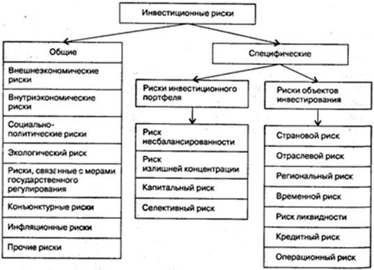 В общем виде классификацию наиболее значимых и специфичных для инвестирования рисков можно представить в виде схемы (рис. 1) [1, C. 6].