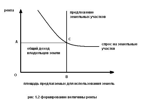 Именно поэтому в экономической науке принято выделять доход владельца земли от ее продажи в особую категорию — ренту (от французского «rent» — «фиксированный доход»), поскольку это доход собственника ресурса, физически не поддающегося увеличению. Такой доход получают собственники земли, а также владельцы уникальных способностей (например, певцы, спортсмены, звезды кино и театра). Как формируется величина ренты (если взять в качестве примера рынок земли), показано на 1.2.