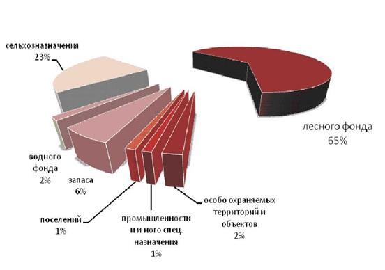 Отметим, что указанная на Диаграмме 2 структура выполнена Роскадастром по текущему юридическому состоянию земель. Реальная структура распределения земельных ресурсов РФ может отличаться от приведённой в ту или иную сторону, как в силу неполноты кадастрового учёта, так и в силу законодательных новелл, допускающих, к примеру, существования лесов и вне земель, отнесённых к категории лесного фонда (Лесной кодекс).