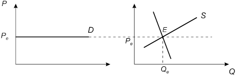 Рис. 1 иллюстрирует, что при совершенной конкуренции предложение поддерживается на равновесном уровне (Pe ). Иными словами, любой объем выпуска может быть распродан по равновесной рыночной цене. Это исключает инфляцию, безработицу, перепроизводство и другие явления экономического неравновесия.