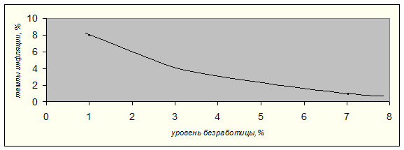 Связь между уровнем безработицы и темпами инфляции (кривая Филипса)